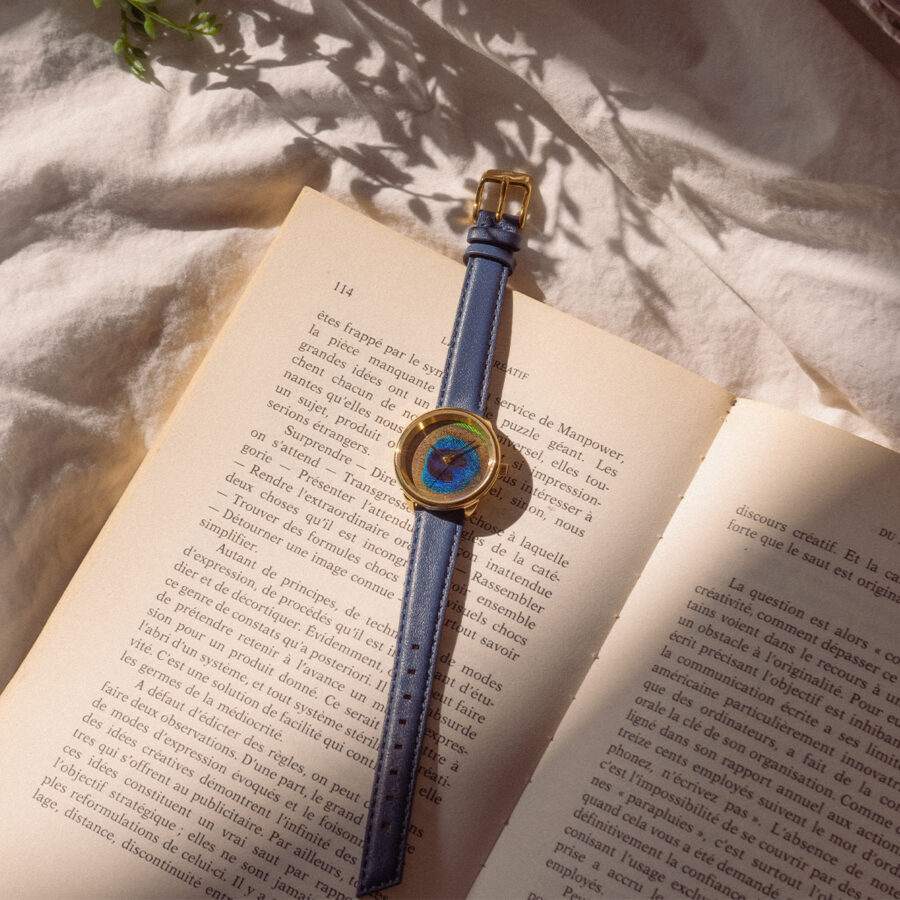 Montre DWYT ligne Plume gold, cuir bleu marine DW-03304-1029