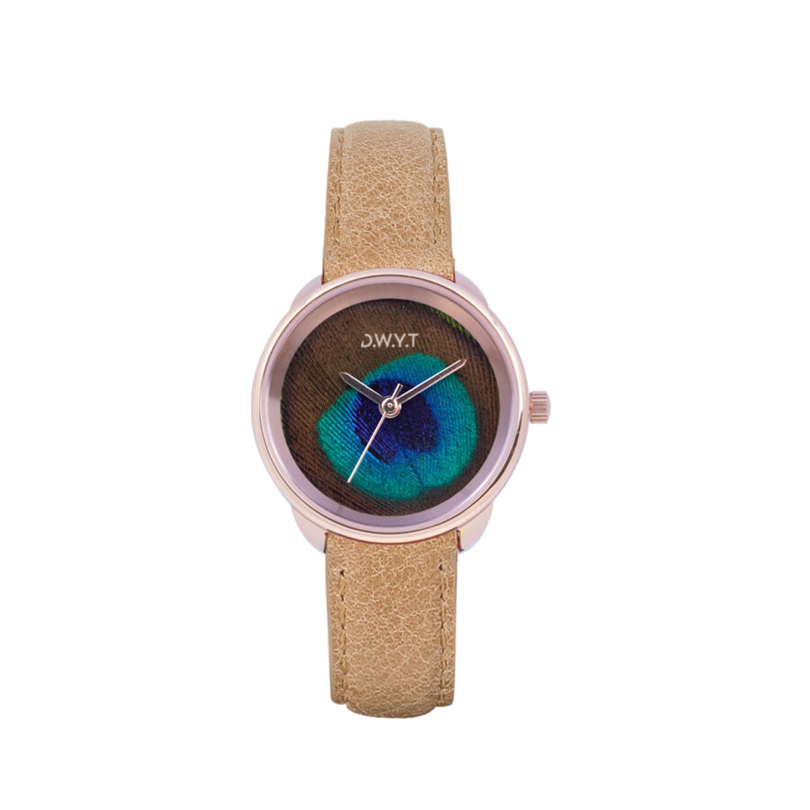 Montre DWYT ligne Plume rose gold, cuir grainé beige DW-03301-1050